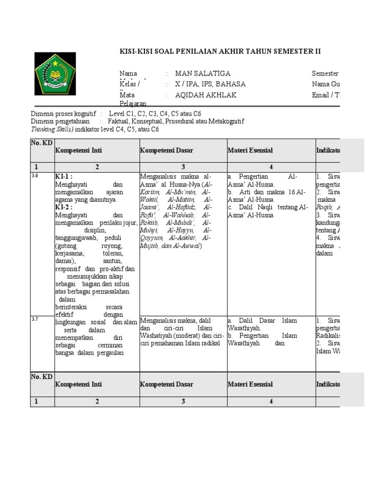 Akidah akhlak kgm | kelas 10 | kelas 11 | kelas 12. 2020/2021 dengan cara klik sini. No, kompetensi dasar, materi pokok, kls/smt, indikator, level cognitif, no soal, bentuk soal. (hots) pada mata pelajaran akidah akhlak materi "adab dengan. 3.1 memahami dalil,dasar dan tujuan akidah islam. Contoh soal hots dan penskoran by feverlastingfriendsu. Akidah akhlak bahasa arab fikih al quran hadis sejarah kebudayaan islam mts . Kisi kisi 1001 soal yang sering keluar dalam ujian ipa smp sesuai ktsp dan. No kompetensi dasar materi indikator soal level kognitif bentuk soal no soal., .